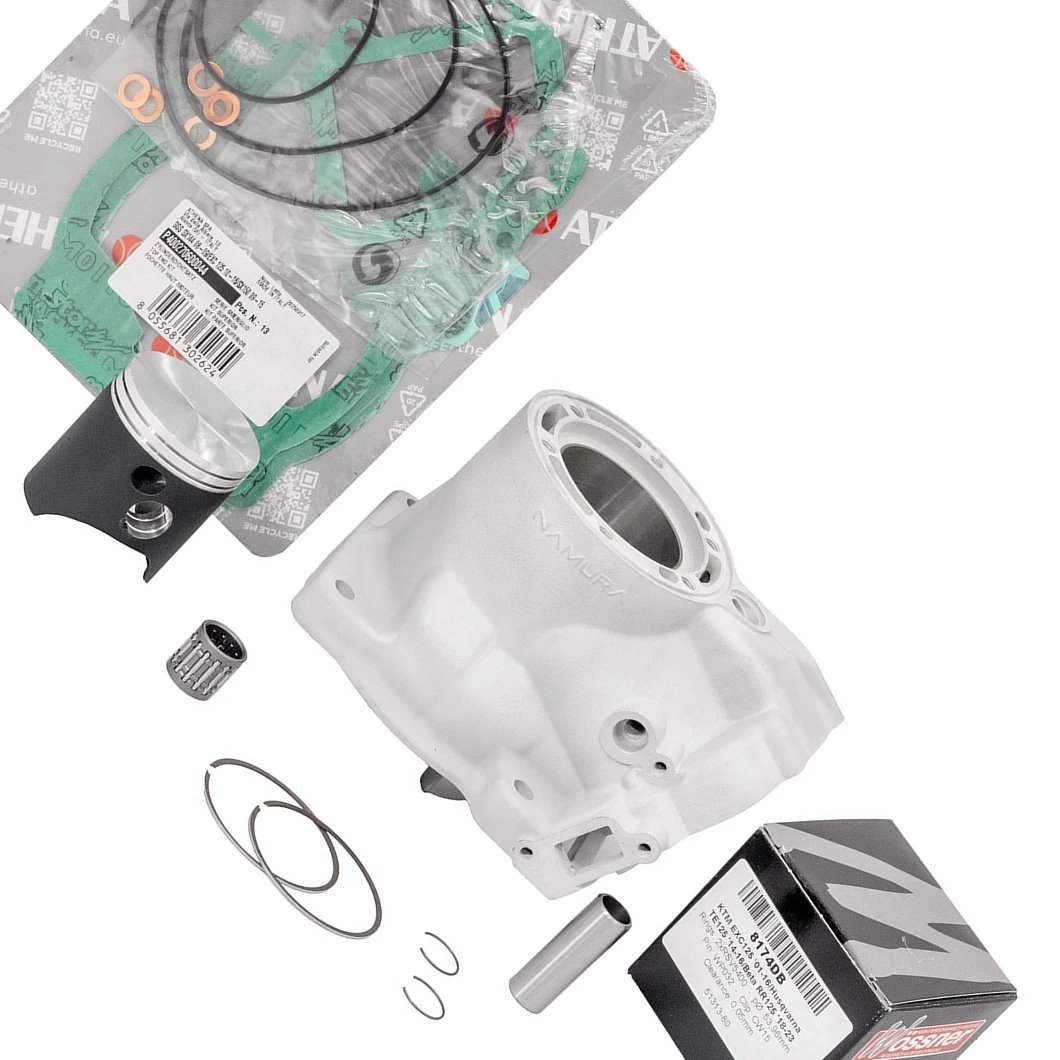 Kompletny zestaw cylindra Namura o standardowej średnicy 54 mm, przeznaczony do motocykli dwusuwowych. Zestaw zawiera cylinder z powłoką Nicasil, tłok, pierścienie oraz uszczelki górnego końca silnika. Zapewnia pełną regenerację jednostki napędowej, przywracając jej fabryczne parametry.