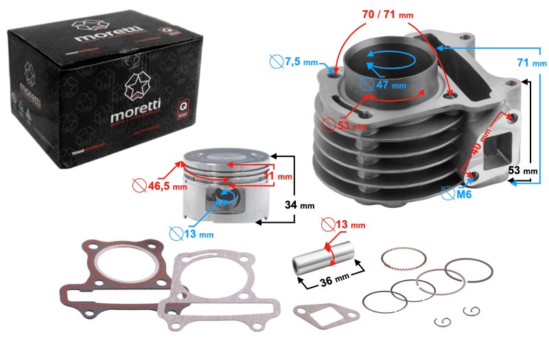 Cylinder kpl GY6 4T 80 cm3 47mm Moretti - CIGSKC0804TAPOPMOR000HU5