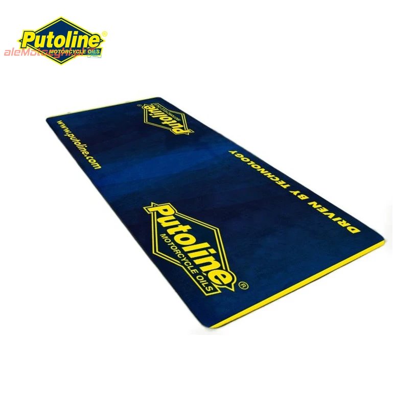 PUTOLINE PIT MAT - MATA POD MOTOCYKL ŚRODOWISKOWA / SERWISOWA - Specjalistyczna mata przeznaczona do użytku pod motocyklem, zapewniająca ochronę środowiska przed wyciekami płynów eksploatacyjnych podczas serwisu lub postoju.