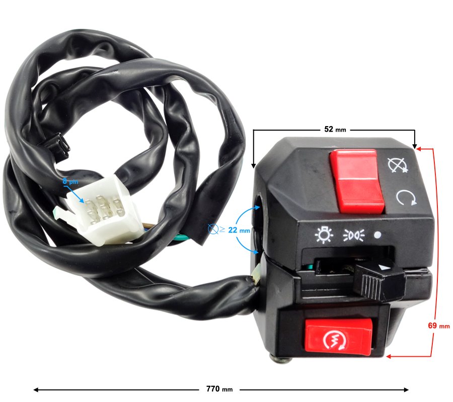 Spotkasz także pod nazwą: Przełącznik zespolony prawy, kostka 8 pinów, 8 przewodów, Barton Hyper 125