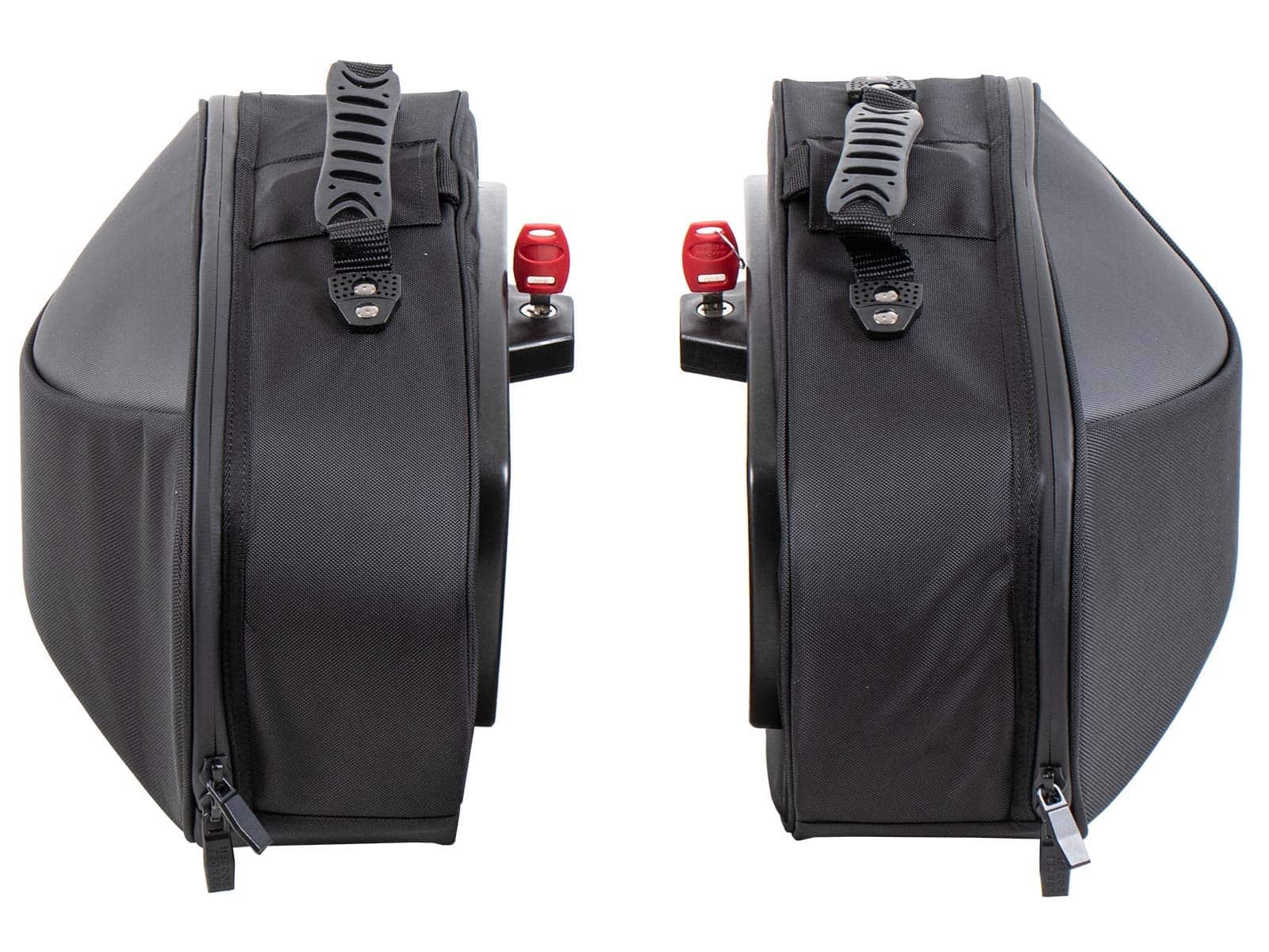 - Zalecana ładowność: 3-5 kg na torbę (należy stosować się do informacji dotyczącymi danego modelu na odpowiednim stelażu i specyfikacjami producenta motocykla).