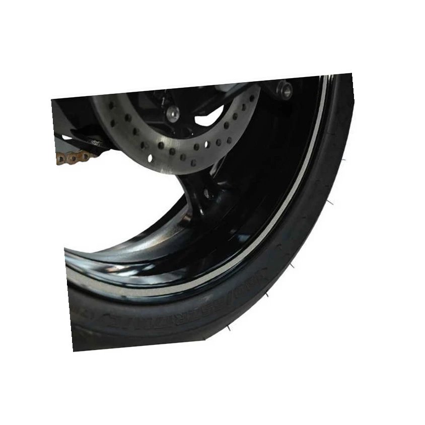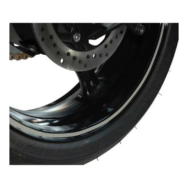 Taśma odblaskowa na rant felgi, w kolorze szarym, przeznaczona do poprawy widoczności motocykla na drodze. Zwiększa bezpieczeństwo poprzez odbijanie światła, szczególnie w warunkach słabego oświetlenia. Jest to element dekoracyjny i funkcjonalny, łatwy w aplikacji.