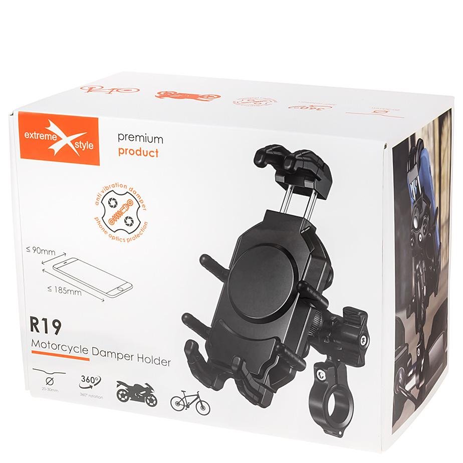Uchwyt R19 został wyposażony w system antywibracyjny zapobiegający przenoszeniu drgań z pojazdu podczas jazdy. Najlepszy w swojej klasie izolator drgań zapobiega uszkodzeniom delikatnych elementów telefonu, a zwłaszcza rozkalibrowaniu się optyki aparatu.